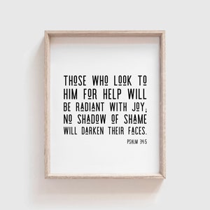 1 Of David when he feigned madness before Abimelech who drove him out and he went away. 8x10 poster print Psalm 345 scripture Those who look to the Lord will be radiant with joy no shadow of shame will darken their faces. The humble shall hear of it and be glad.